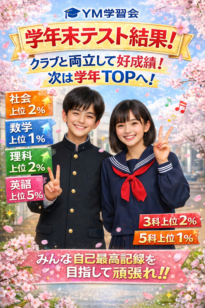 🔴数学 クラストップ🔴英語 学年トップ🔴数学 学年上位5%内🔴英語 学年3%内🔴5科目 学年7%内